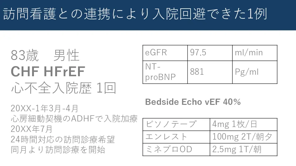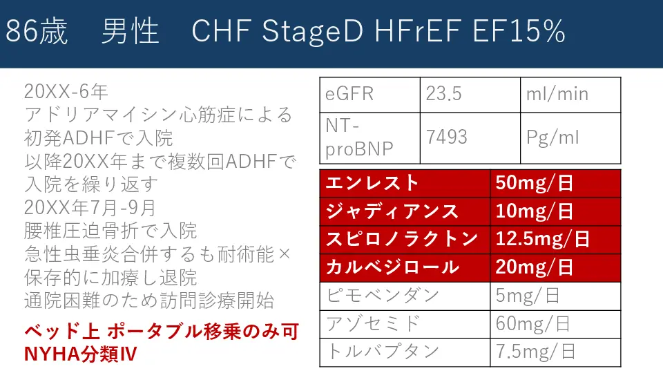 在宅診療での心不全診療は病院外来診療に比べても大きなメリットがありますのでそれをお伝えすることができる内容となっております。 また心不全の病の軌跡を意識して患者さんを診ることで在宅で最期まで心不全患者さんを看取ることが可能であることを実感して頂ける内容となっています。