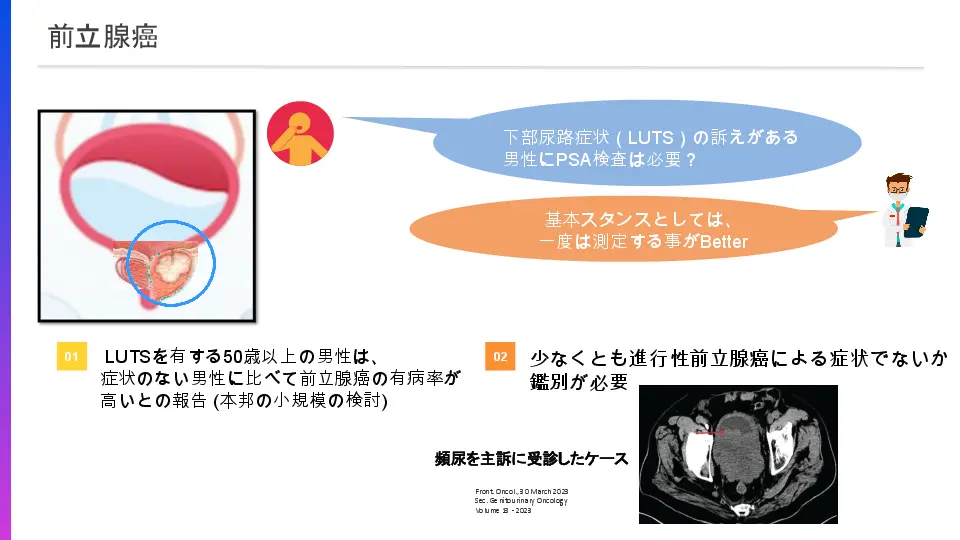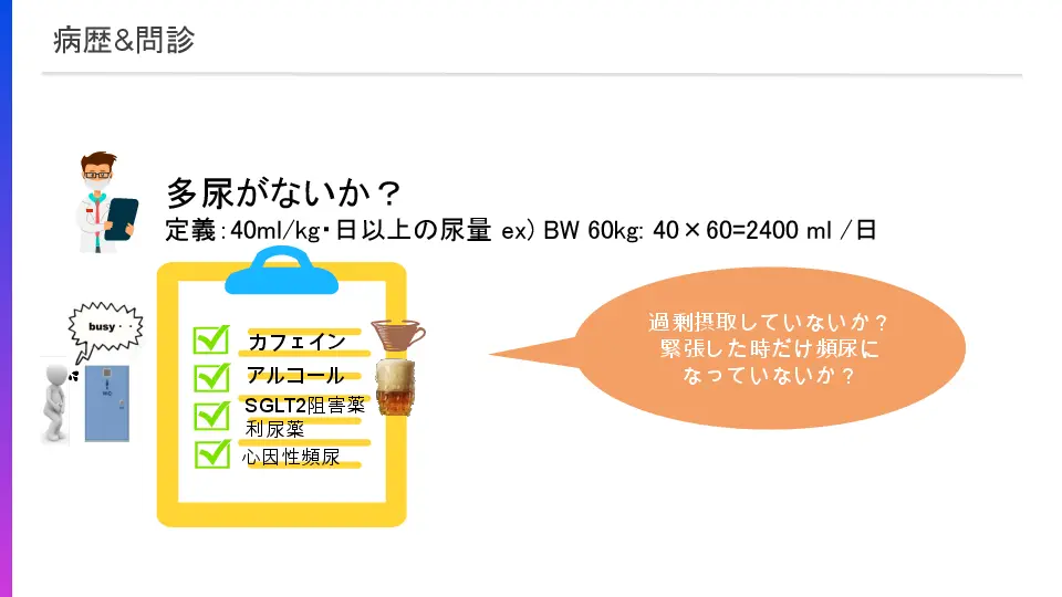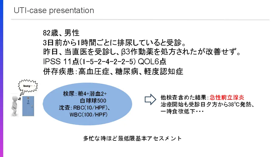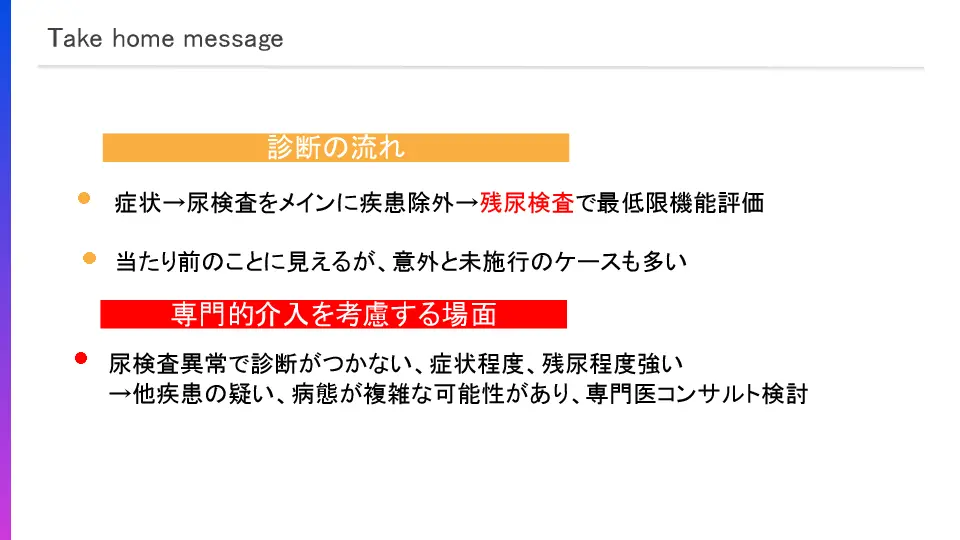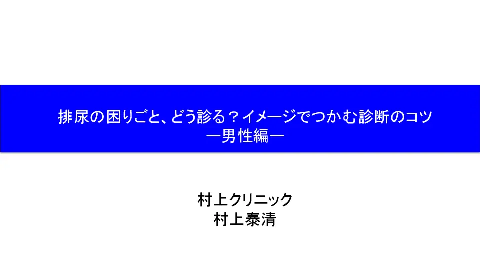 泌尿器科以外の先生でも、頻尿などの訴えに対応する事は多いと思いますが、 対応がよく分からないと言った声をよく耳にします。 実際、一次対応が適切でなく、悪化して泌尿器科に受診される方が多い事も事実です。 ただ、勉強したくても、専門的な本や勉強会が多く、他科ドクターが有効に勉強するツールが少ない事も一因と思います。 泌尿器科以外の先生にも面白く、イメージで泌尿器科初期診療がつかめるような勉強会にしたいと思いますのでよろしくお願いします。 #頻尿の診かた#前立腺肥大症#過活動膀胱#一次治療