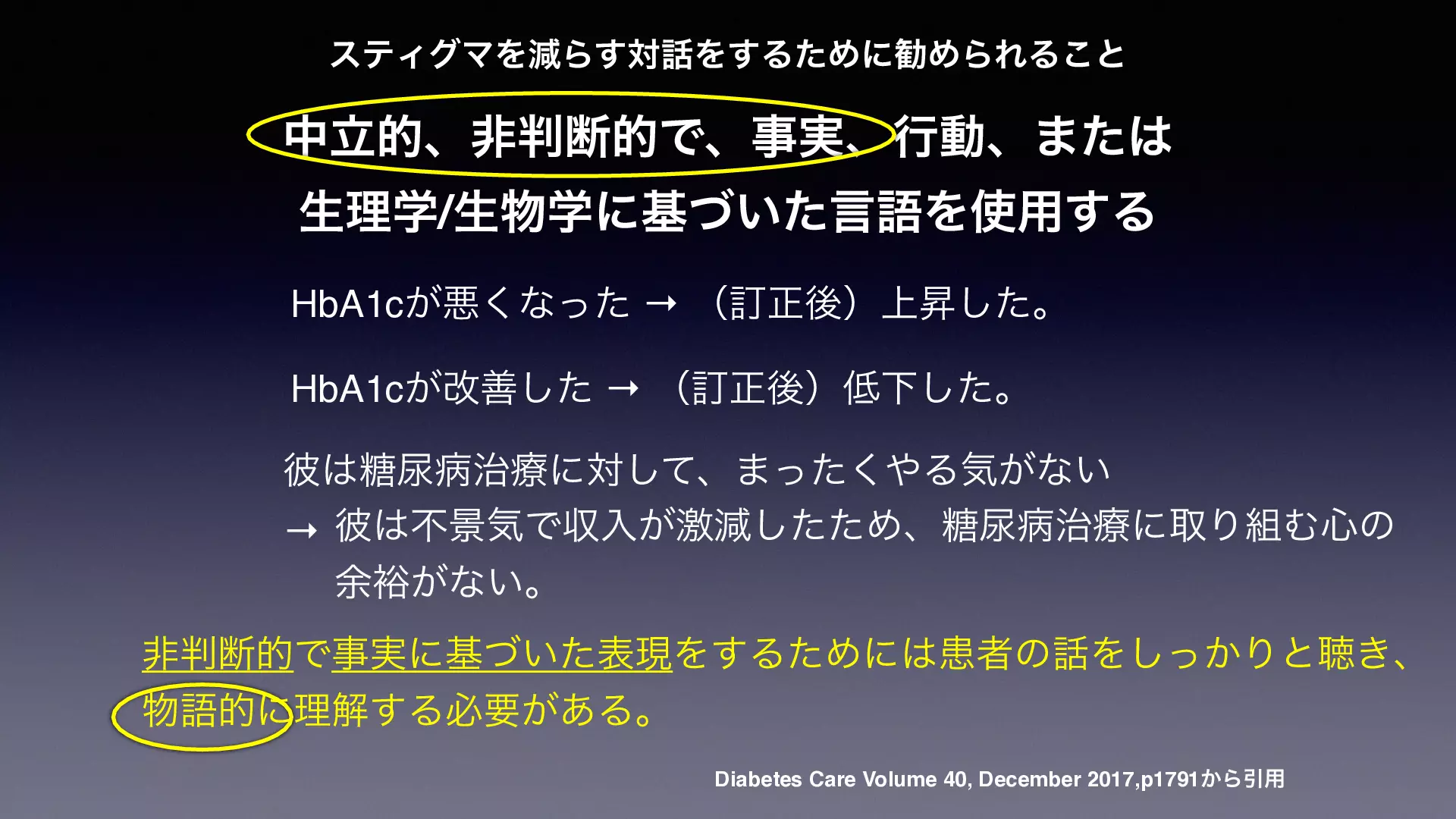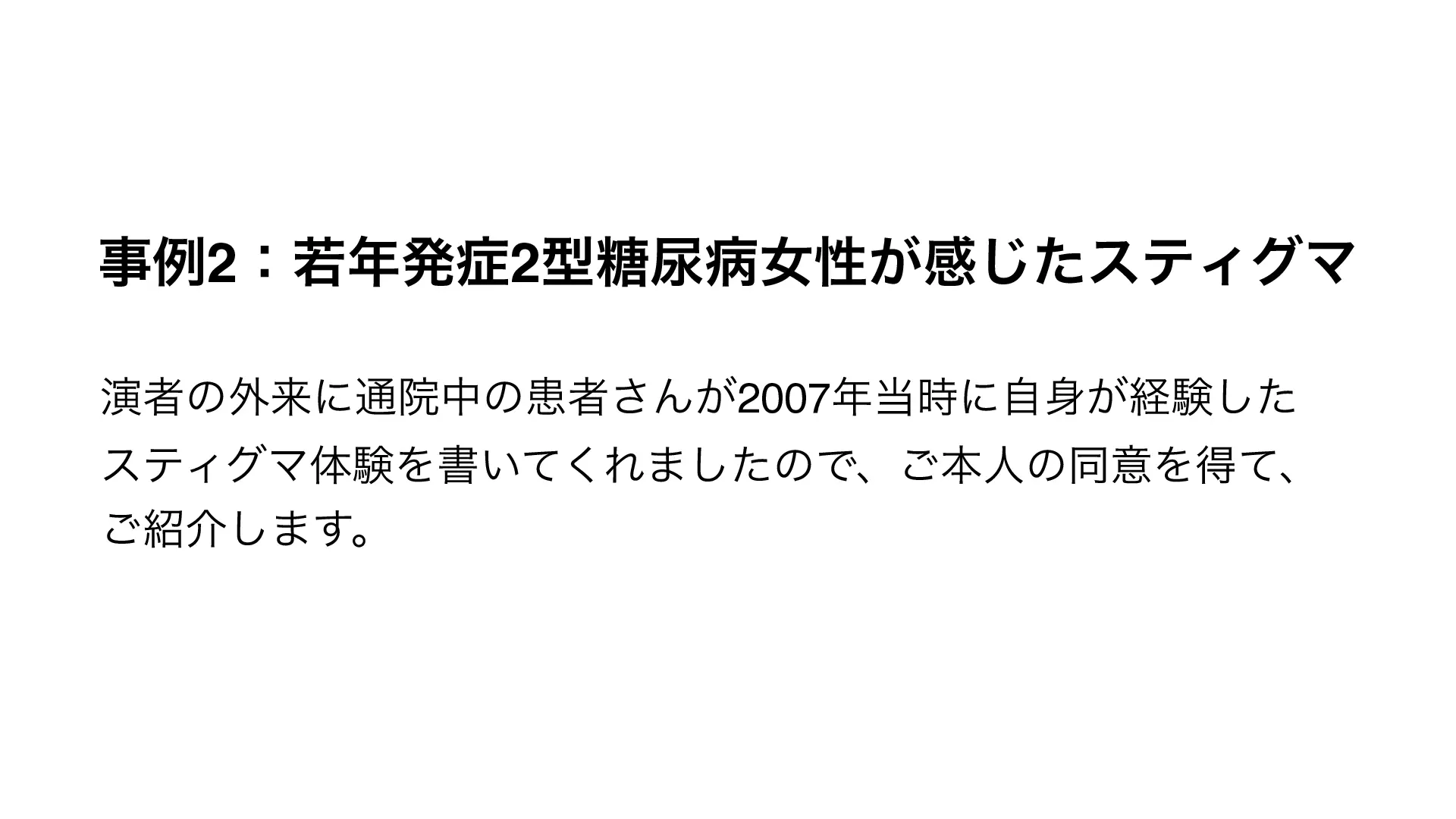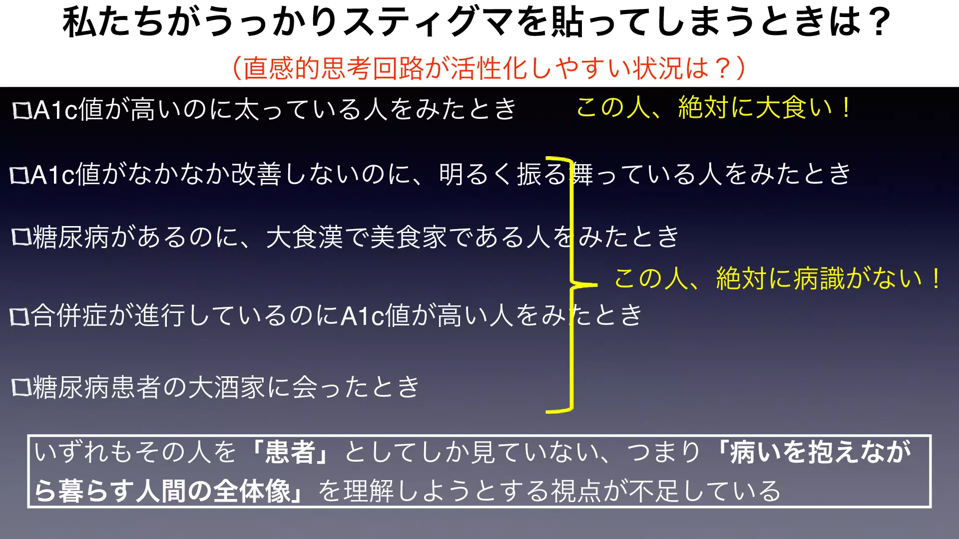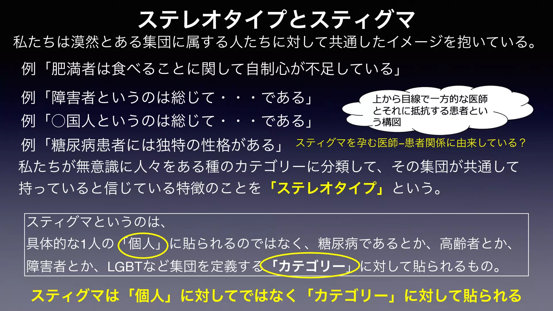 様々なスティグマを観念でなく、"実感"として理解する〜糖尿病診療の現場から〜